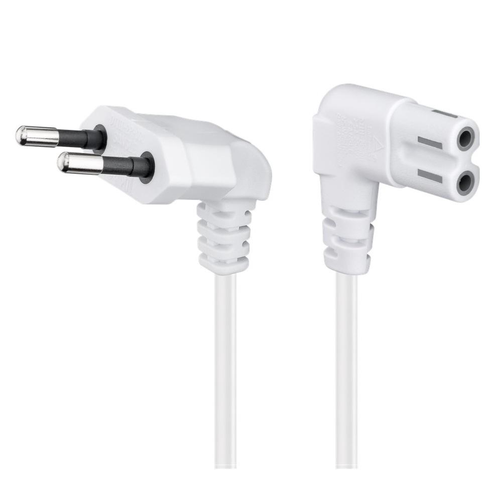 Câble de Raccordement Fiche Euro Coudée des Deux Côtés, 1 m, Blanc