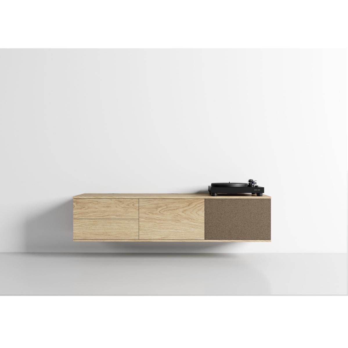 Meuble 155,1 cm - Chêne -3 caissons - 2 portes chêne-1 porte tissu